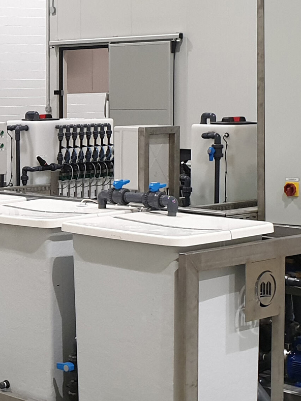 Greenhouse irrigation systems hav two types of greenhouse fertilizer tanks to prevent undesired chemical reactions between fertilizers. Once the A- and B-tanks are prepared, the solutions then come together in a mixing bin. The mixing bin contains the concentration that is eventually given to the plant. As a result, the chance of sedimentation and undesired creation of gypsum is smaller.